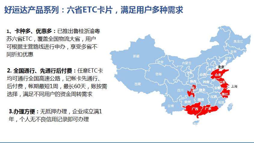 - 山東車安和中交興路公司合作---- 好運(yùn)達(dá)ETC系列產(chǎn)品,免費(fèi)給貨車申請安裝貨車ETC,線上申請,直接郵寄到家。貨車安裝ETC,從此暢行高速路!